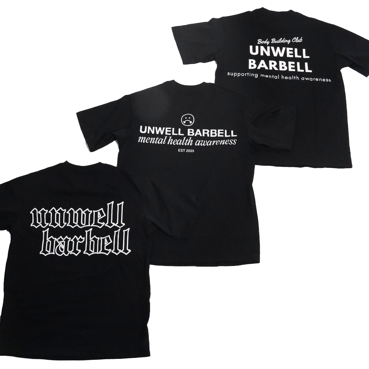 Here at unwell barbell our mission is to bring mental health awareness to gym rats one shirt at a time. Letting everyone who is going through something know that they are not alone. Portion of profits donated to suicide prevention.